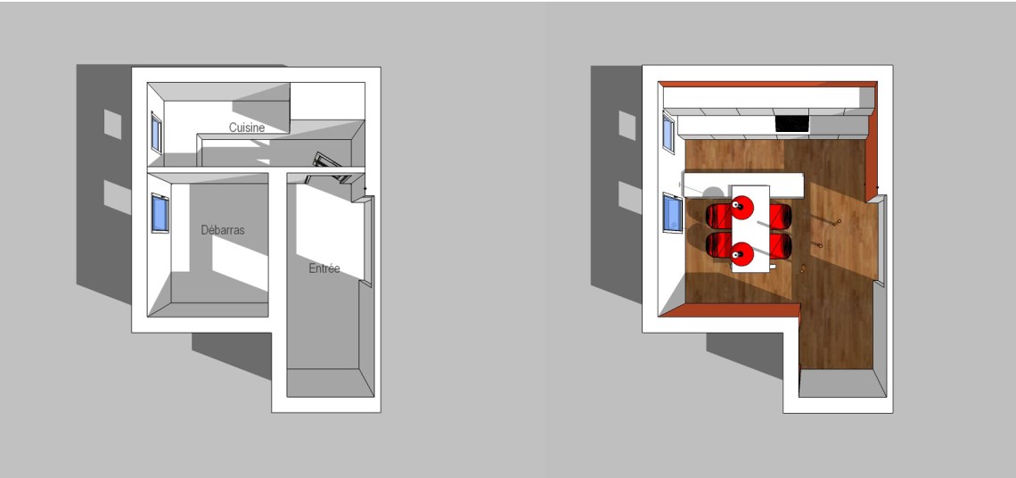 Dans un premier temps, il s’agit de revoir la cuisine trop étroite et d’en faire une véritable pièce à vivre pour recevoir la famille et les amis.