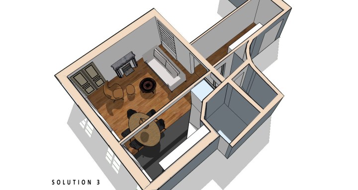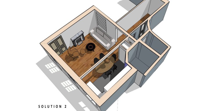 Solution 3 – salon, séjour cuisine – Un lieu unique