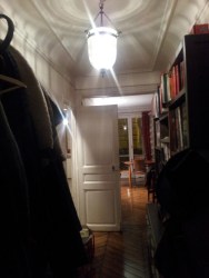 La grande entrée a besoin de rangement, les manteaux, les sacs, les chaussures ont tendance à ne pas trouver leur place dans cette grande entrée éclairée par une fenêtre. Le bruit fait par les personnes empruntant les escaliers mitoyens doit être traité pour trouver plus d’intimité.