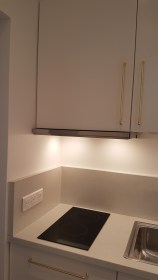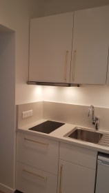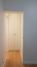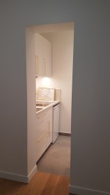 Grâce à la démolition du placard de la cuisine, il a pu être réalisé un passage vers la salle d’eau indépendamment de la cuisine. La cuisine est devenue une véritable pièce et non un lieu de passage mal agencé.