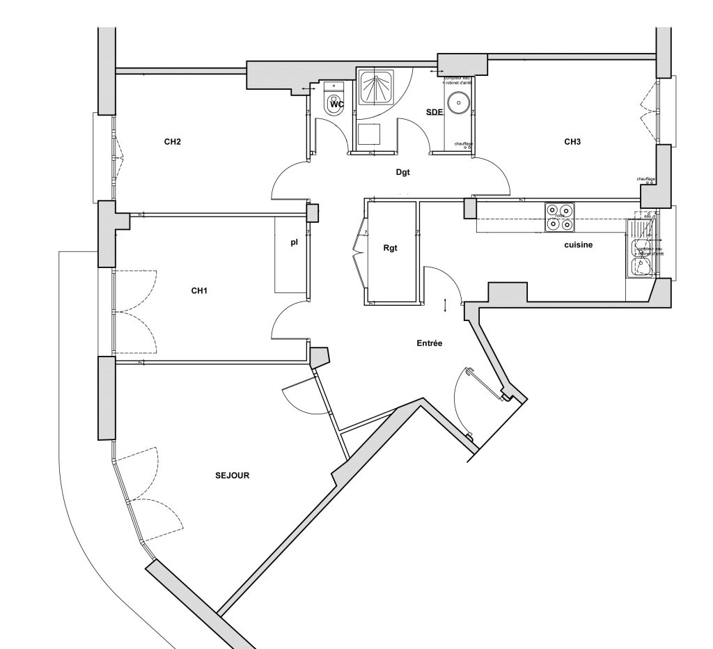 Malgré ces contraintes, cet appartement peut être optimisé en améliorant son organisation, tout en intégrant un nouvel espace de vie utile pour le télétravail.